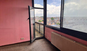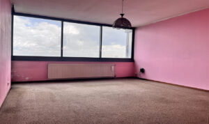 A proximité du charmant petit parc de quartier Huybrechtspark, au 6ème étage avec ascenseur de la résidence Charles Woeste, avec son parc privé, appartement une chambre à rénover, 55 m², avec petite terrasse (vue sur Notre-Dame de Laeken).