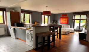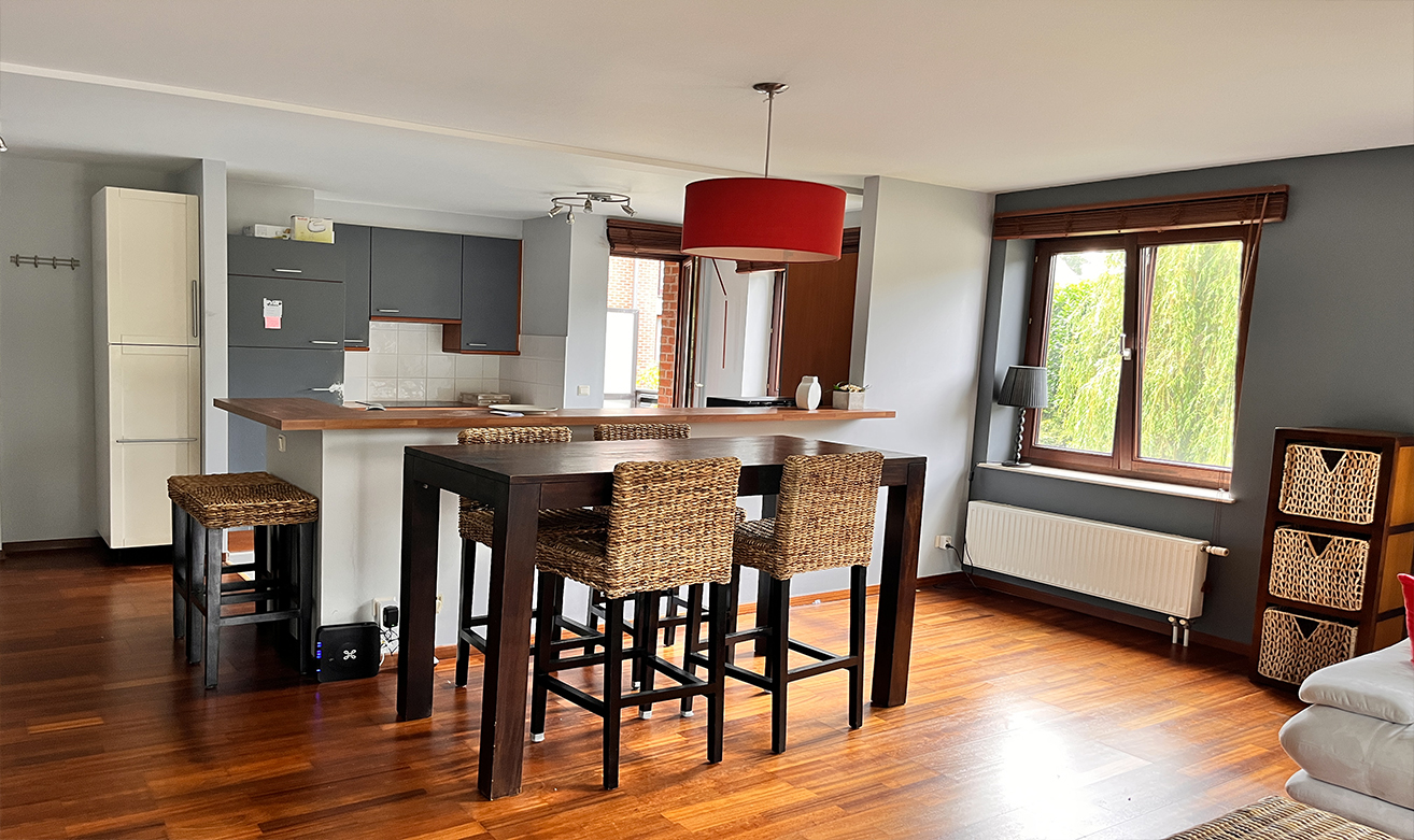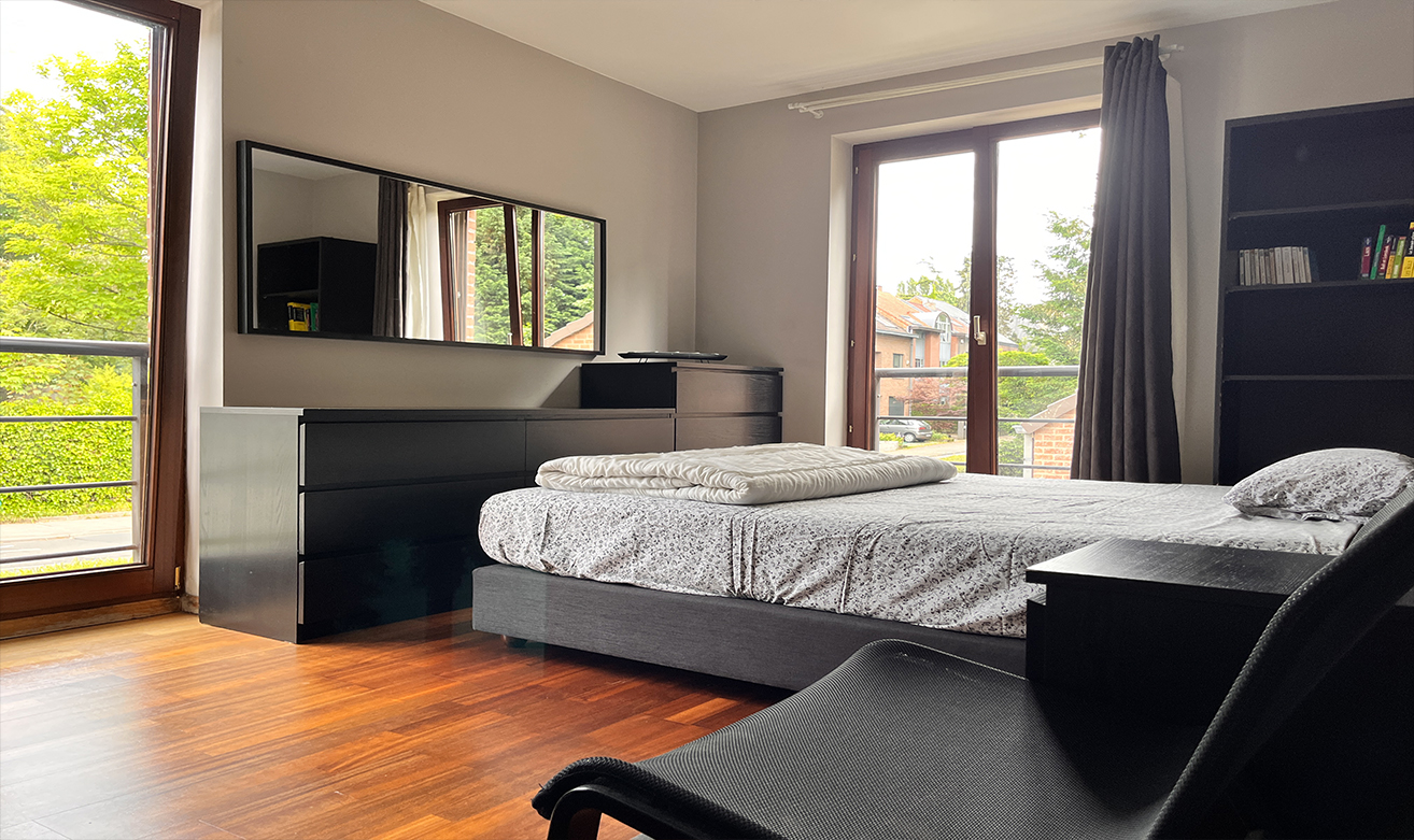 A proximité d’espaces verts comme le parc de la Sauvagère et la réserve naturelle du Kinsendael, et à deux pas du Lycée Français Jean-Monnet, i-Move vous propose un appartement de 82m², 2 chambres (11m² & 9m²) au 1er étage. L’appartement se compose d’un séjour d’environ 45m² avec cuisine ouverte, cuisine qui est équipée avec taques vitrocéramiques, frigo, four & four micro-ondes, évier inox, lave-vaisselles, et machine à laver. Une salle de bain avec 2 lavabos et baignoire, et une toilette séparée avec lave-mains. La lumière illumine l’appartement toute la journée de par son agencement avec ses 3 façades. A proximité de la gare de Calvoet, transport en commun bus 60 (chaussée de Saint-Job), le centre sportif André Derrider et le Tennis Club du Roseau sont également tout proches.